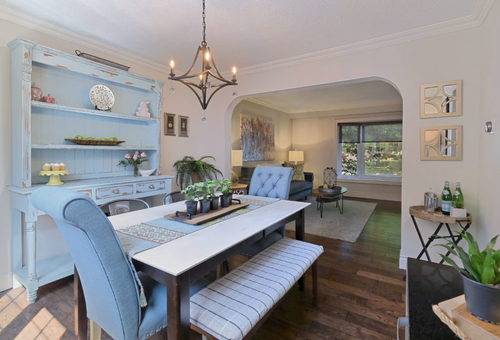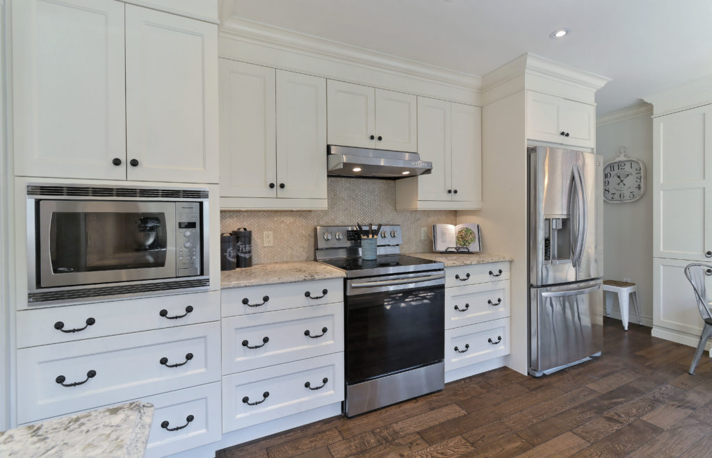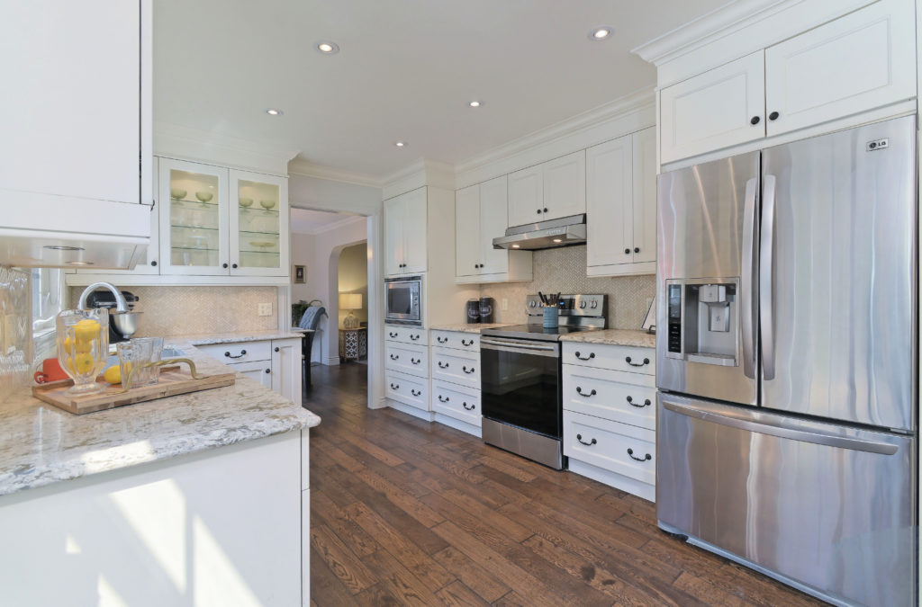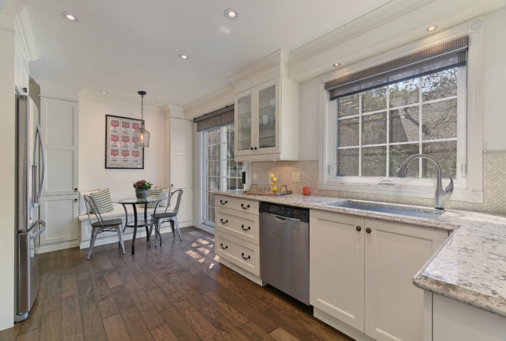 Modern Kitchen with Quartz Counters, Eating Area and Walk Out to Backyard